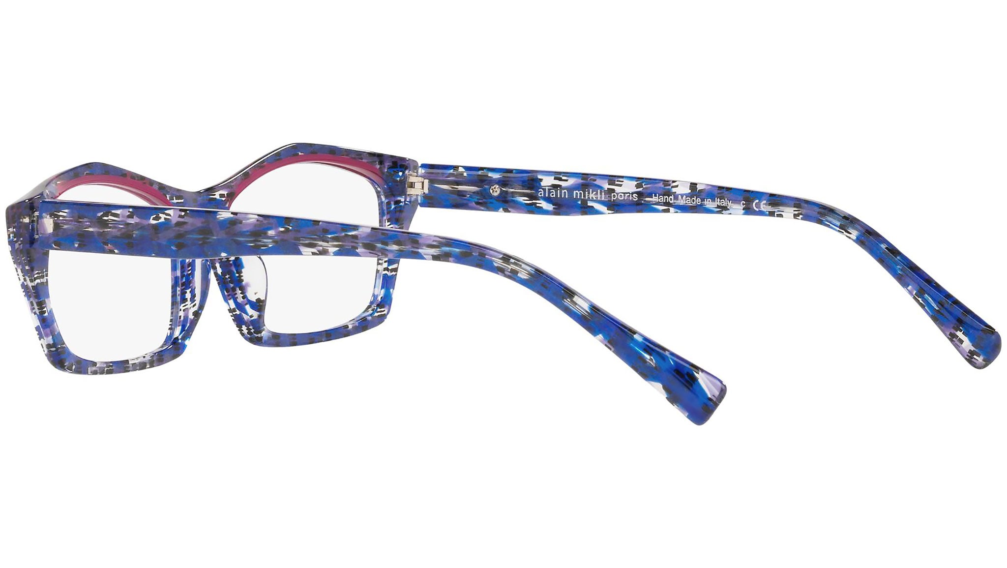 Occhiali da vista Alain Mikli modello A03127 variante colore blu porpora / viola, codice colore 001. Alain Mikli è stato il primo marchio a sostenere l’idea di occhiale come accessorio. Dalla fusione di arte e moda nascono montature da sempre sinonimo di unicità e provocazione, contraddistinte per il design originale e le combinazioni di colori esclusive.