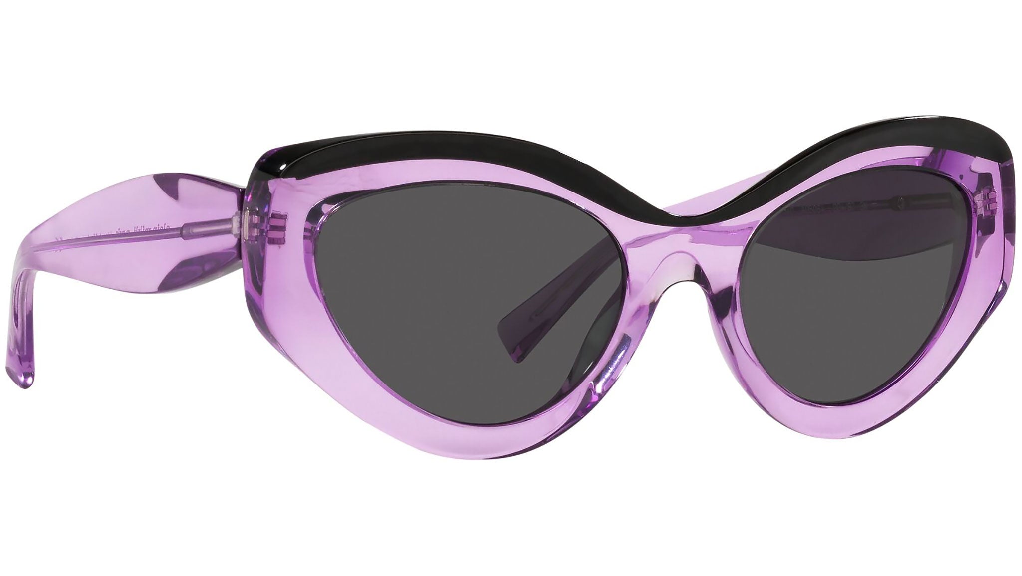 Occhiali da sole Alain Mikli modello A05064 codice colore 004/87, variante colore viola traslucido / nero Mikli con lenti color grigio. Alain Mikli è stato il primo marchio a sostenere l’idea di occhiale come accessorio. Dalla fusione di arte e moda nascono montature da sempre sinonimo di unicità e provocazione, contraddistinte per il design originale e le combinazioni di colori esclusive.
