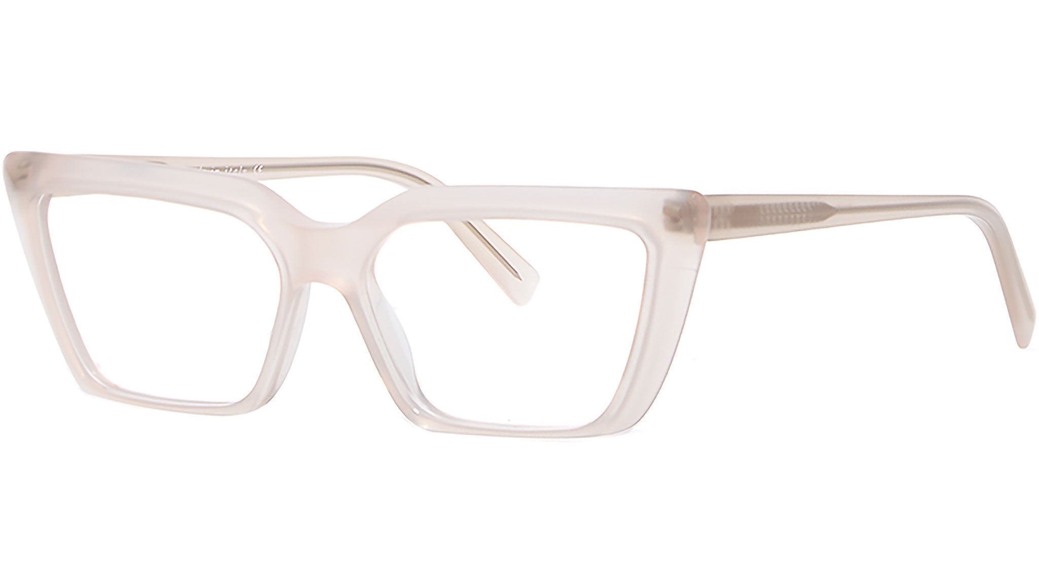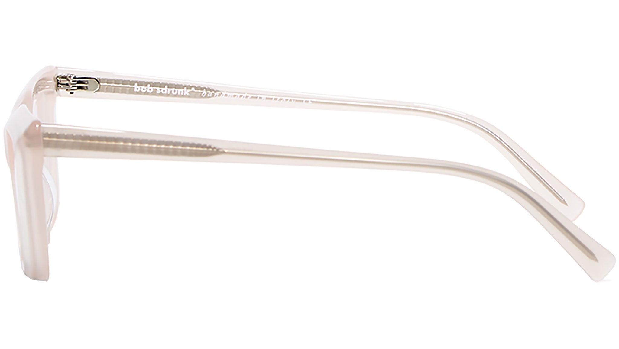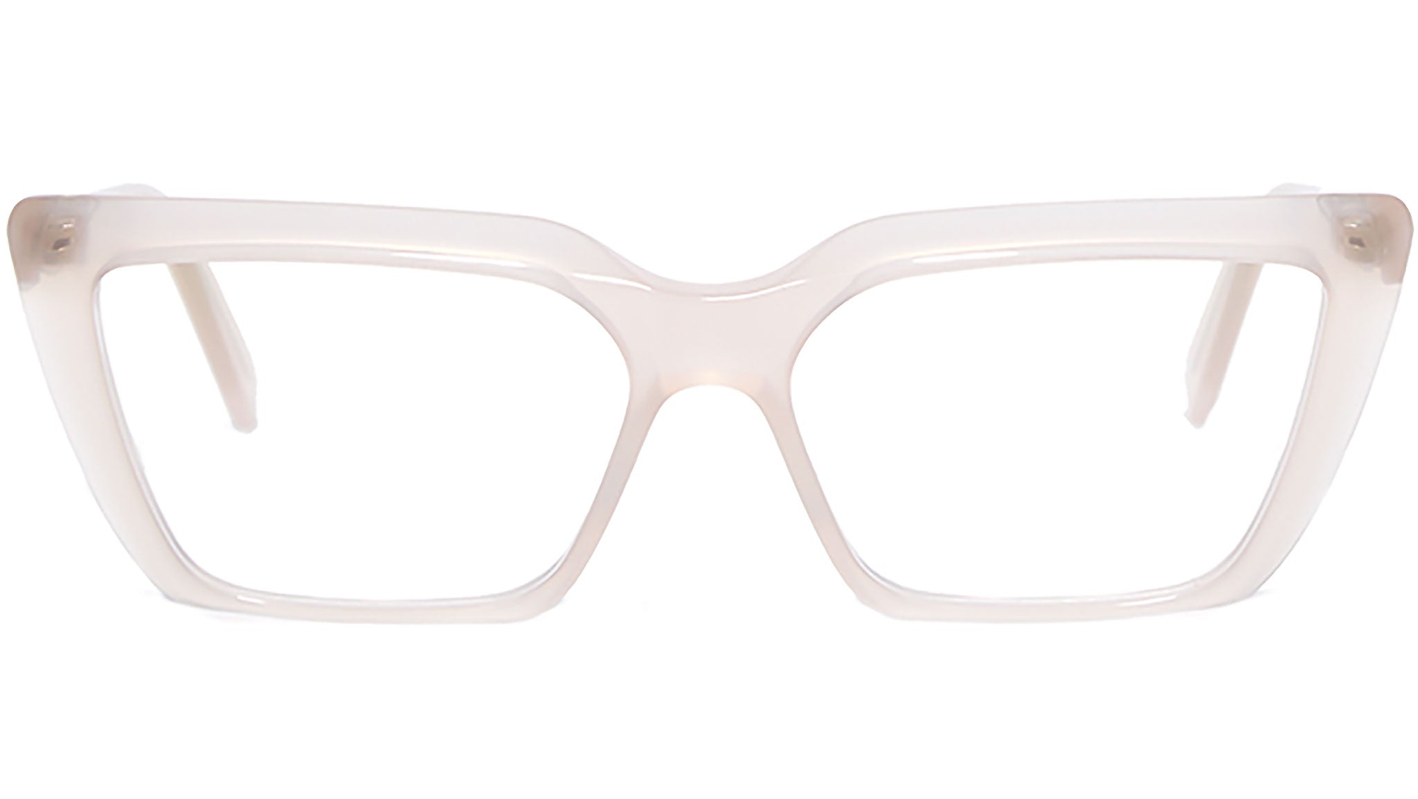 Acetate frame in milky pink. lenses with anti-glare filters.