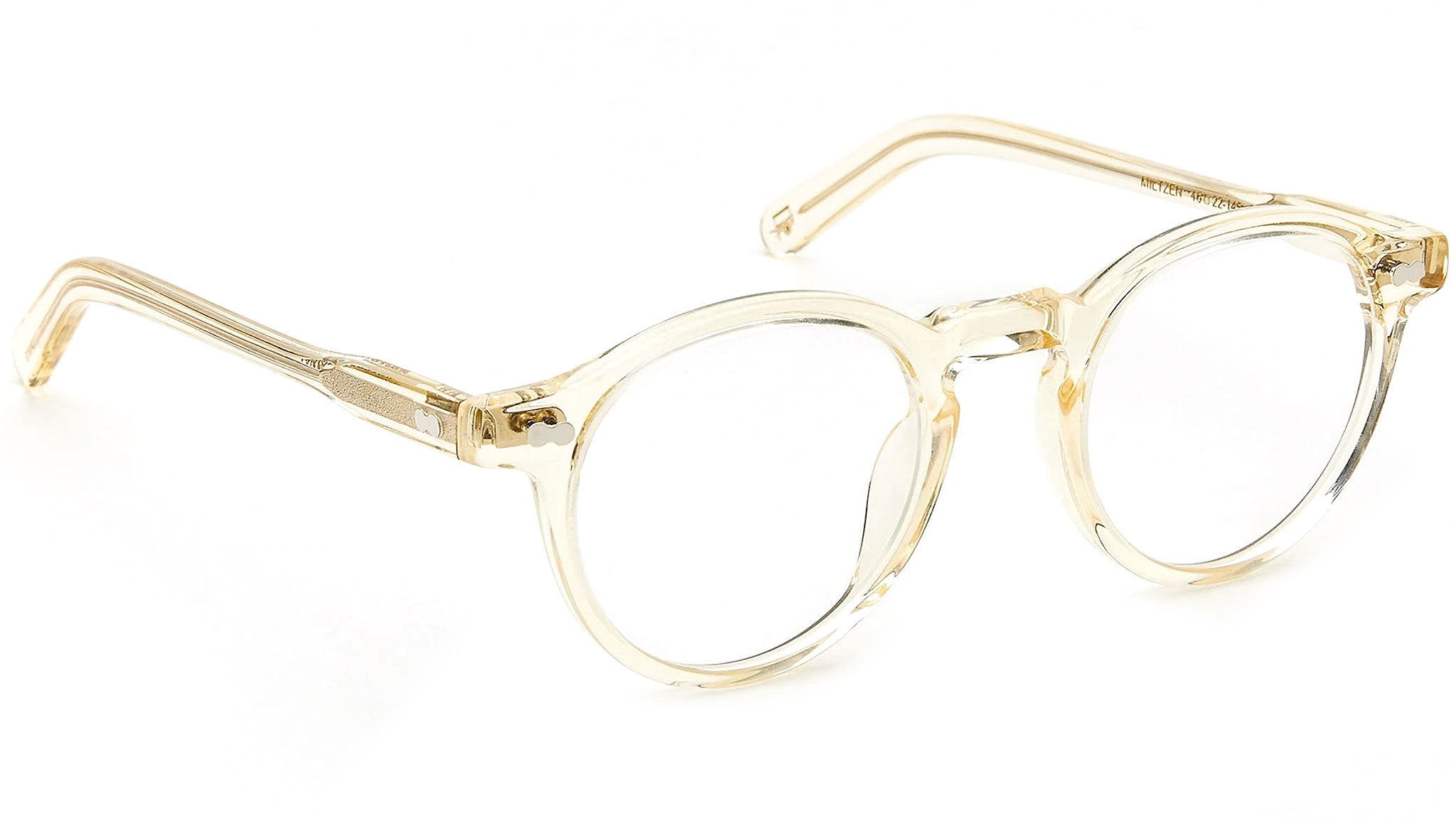 The round, full-vue Miltzen, first introduced in the 1930s, is eponymously named for our Uncle Heshy, who inexplicably everyone called Uncle Miltzen. And it stuck. So there you go, world... The Miltzen. Handcrafted using Italian acetate featuring unique patterns distinctive to each frame Features two adjoined dot rivets. Comfortable key hole nose bridge. Includes acetate nose pads. 3-Barrel hinge. Moscot temple engravings. Signature acetate tips.