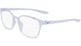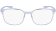 Nike Optical 7026 model featuring shiny crystal clear frame and shiny crystal clear temple. Made with bio-based, injected plastic that minimizes environmental impact while adding durability and lightness to the frame.
