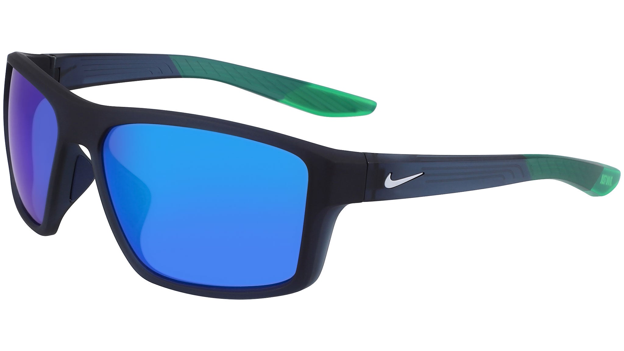 Nike Brazen Fury M line sunglasses model DC3292-410 featuring matte crystal midnight navy frame and blue lens.