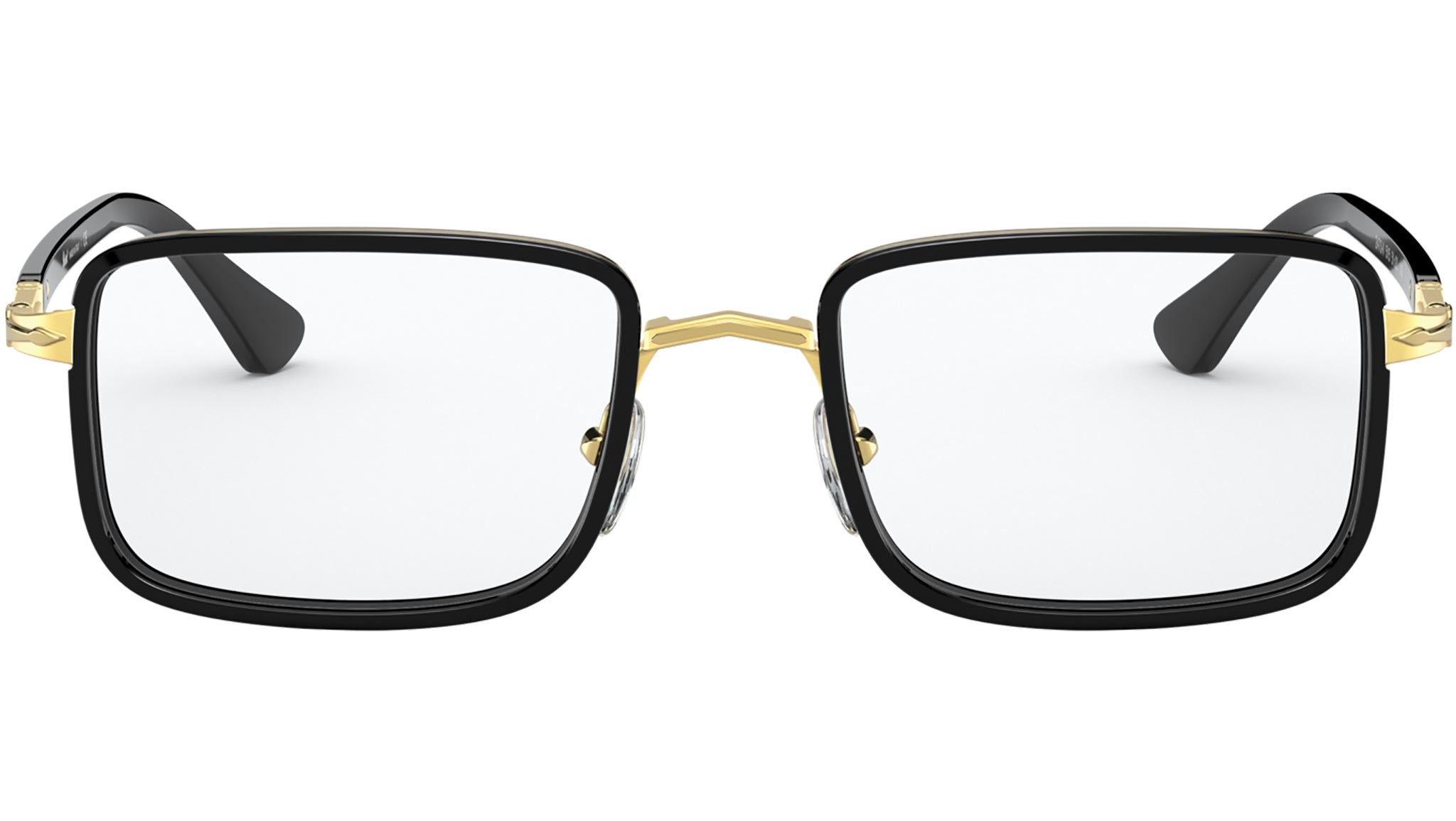 Occhiali da vista Persol modello PO2473V codice colore 515 con montatura full rim in metallo color oro e nero e lenti demo.