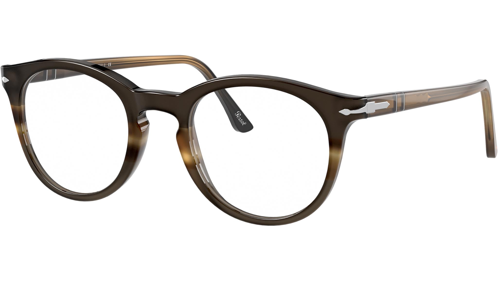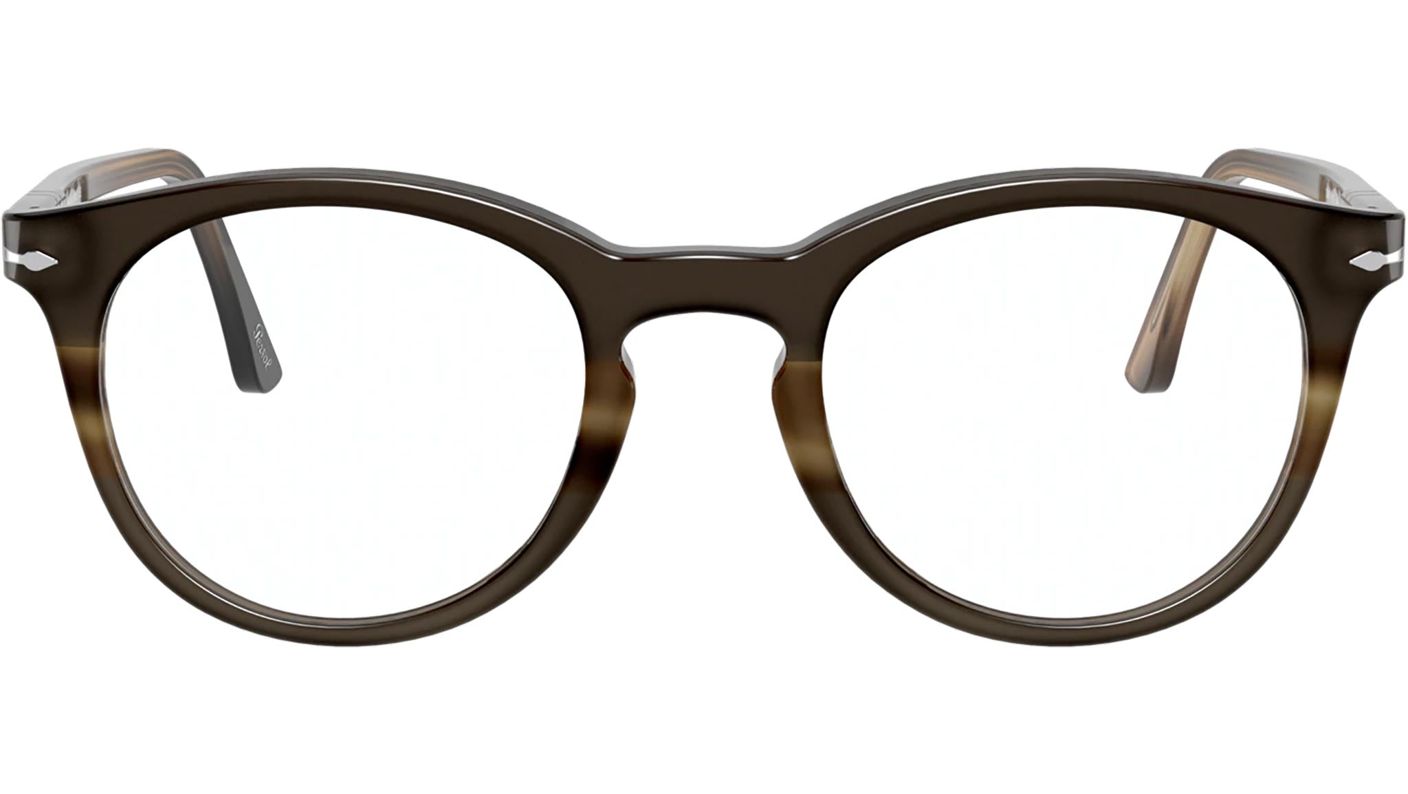 Occhiali da vista Persol modello PO3259V codice colore 1135 con montatura full rim in acetato color a righe marrone e grigio e nero e lenti demo.
