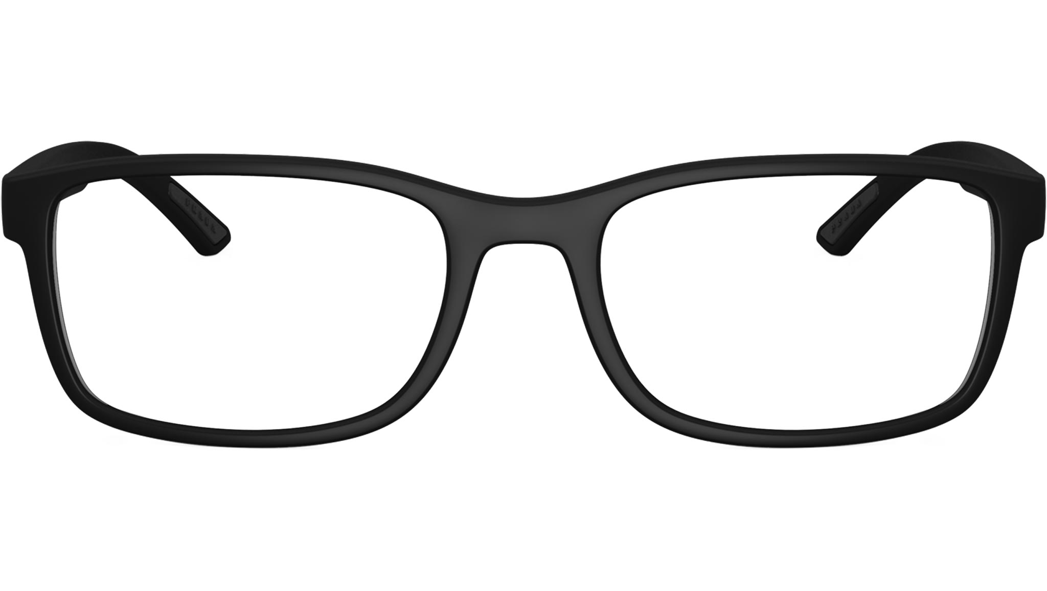 Prada Linea Rossa sunglasses model PS 08US, black rubber frame variant, color code 4535W1 with polar grey gradient lens. Prada Linea Rossa Sun Collection conveys an everyday casual style with all the quality and craftsmanship of the Prada brand.