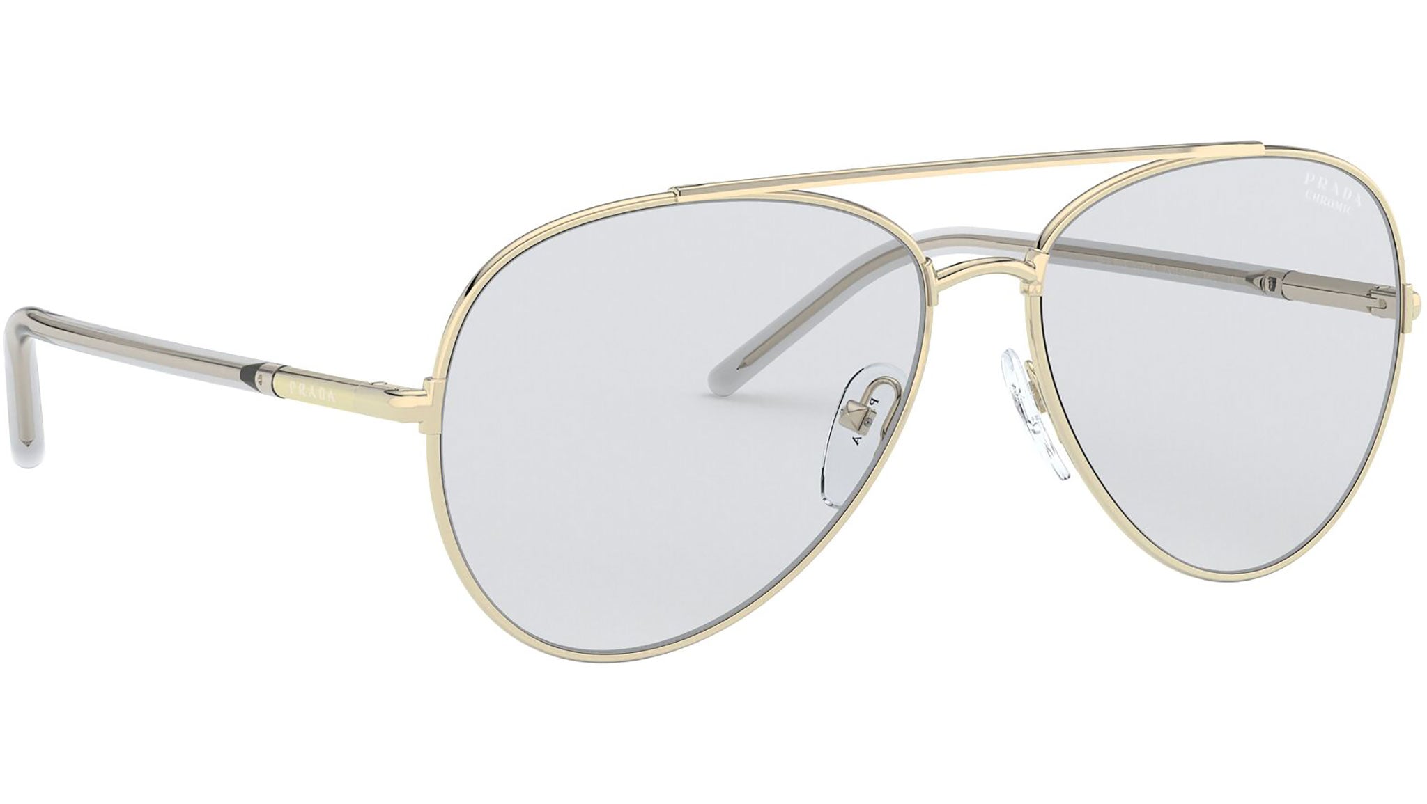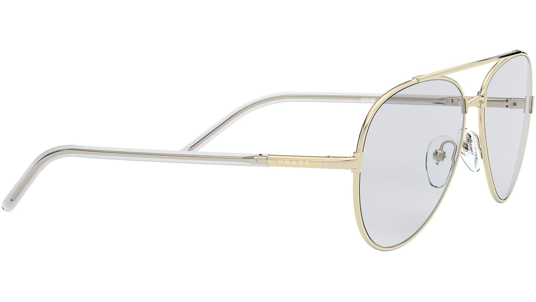 Prada sunglasses model PR 66XS, pale gold frame variant, color code ZVN07D with photo grey lens. Prada represents the best of Italian culture and tradition. It is one of the most innovative, prestigious and widely recognized brands in the fashion and luxury goods industries, with a keen attention to details and new trends.