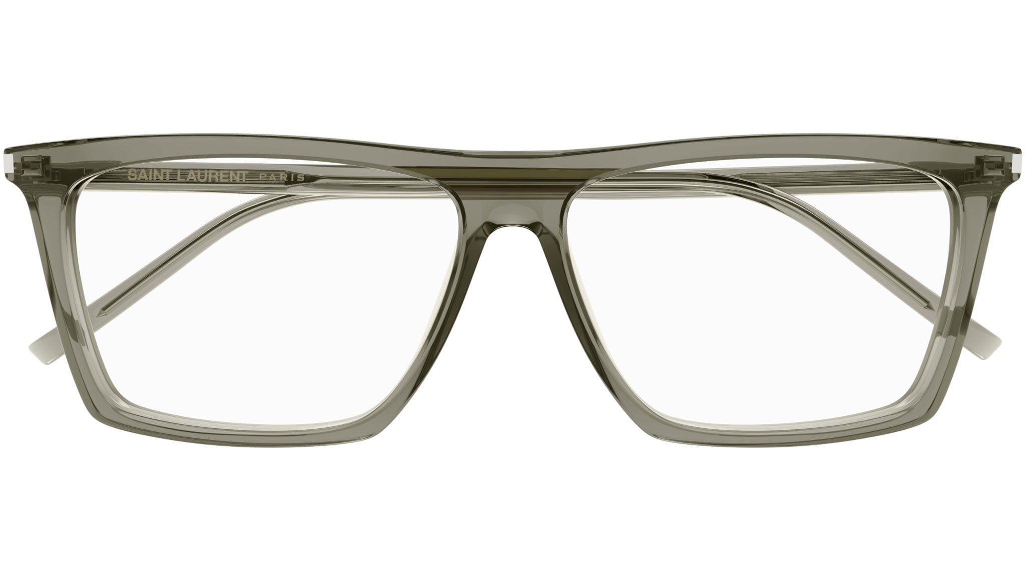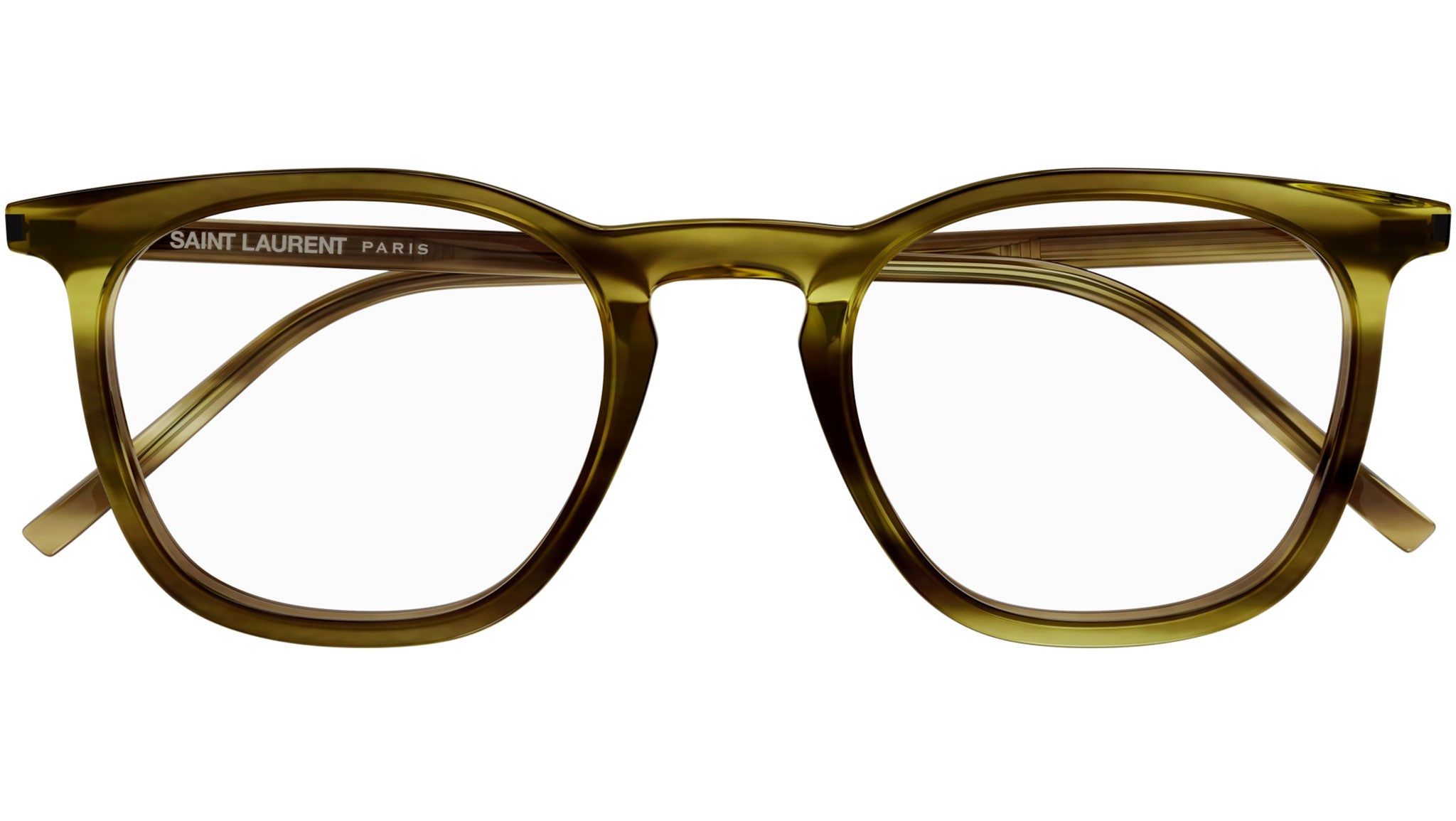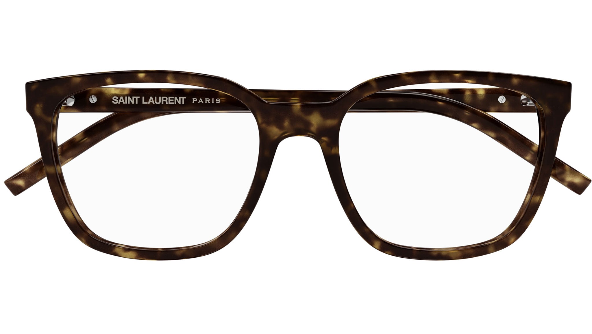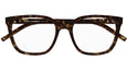 Occhiali da vista Saint Laurent modello SL M129 linea Monogram codice colore 002 tartaruga scuro lucido in acetato riciclato forma rectangle con aste color tartaruga.